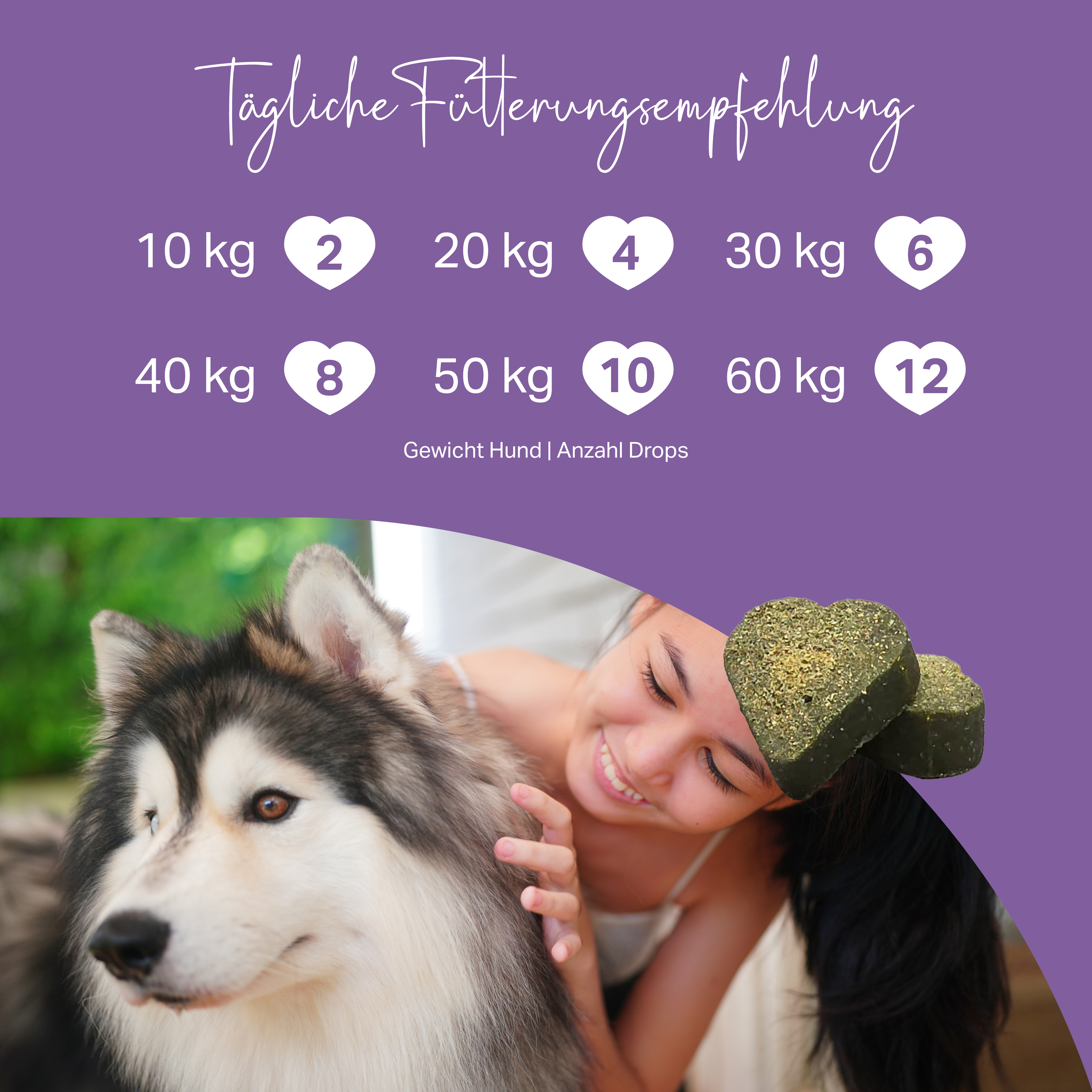 Täglich pro 10 kg Körpergewicht 2 Drops pur oder unter das Futter gemischt anbieten. Immer ausreichend Wasser bereitstellen. Kühl und trocken lagern. Nach Anbruch mindestens 6 Monate haltbar.