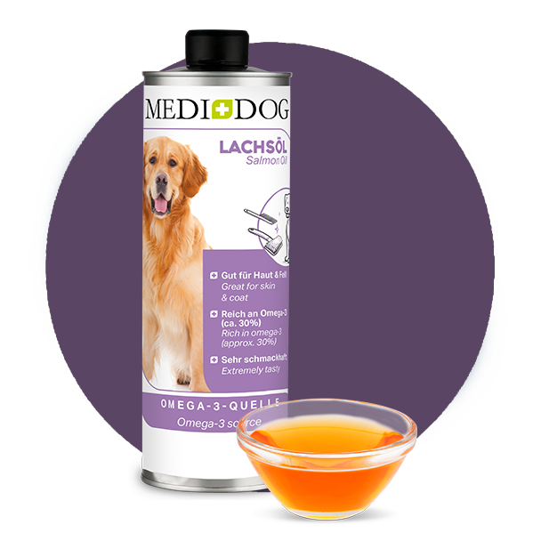 Das Medidog Lachsöl ist für alle Hunde geeignet. Es fördert ein samtig strahlendes Fell, eine vitale Haut und unterstützt bei der Abdeckung des Omega-3-Fettsäurenhaushaltes. Da der Organismus der Tiere selbst nicht die hochwertigen Fettsäuren bilden kann, müssen sie über die Nahrung aufgenommen werden.